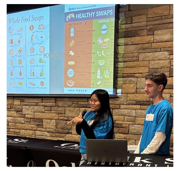 Chuck Nelson, vice president, introduced guest speakers Hlawn Tlang and Blend Dalipi, members of our Diabetes Club, who are undergraduate students at Aurora University, majoring in Health Science and minoring in Chemistry, both aspiring to become medical doctors.