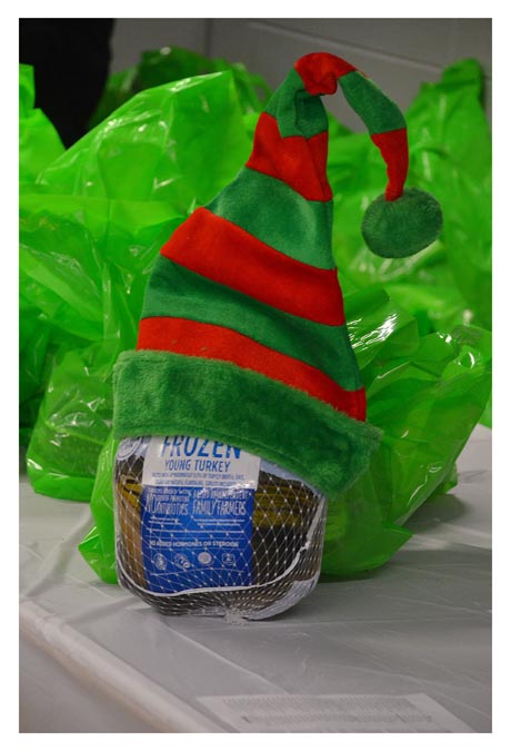 Approximately 135 frozen turkeys and sides were distributed on a first-come basis.