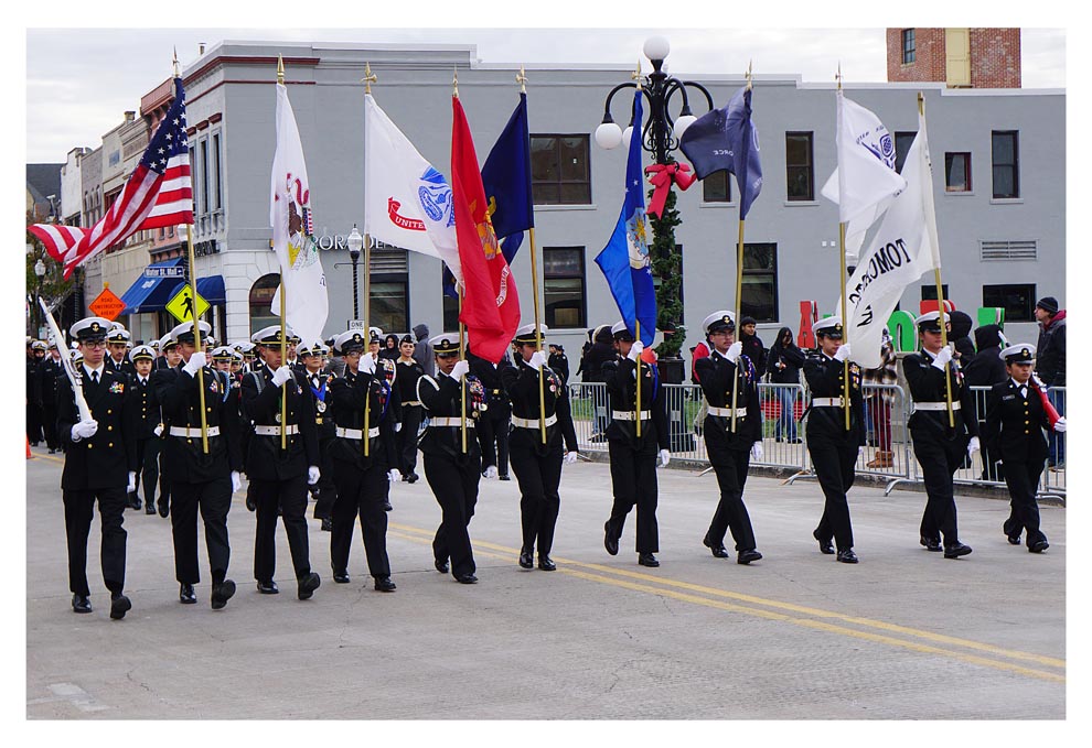 U.S. Marine veterans march in Aurora’s Veterans Day parade Tuesday, Nov. 11.Jason Crane/The VoiceU.S. flags are handed out to parade watchers during Aurora’s Veterans Day parade Tuesday, Nov. 11. Jason Crane/The VoiceEast Aurora High School’s NJROTC cadets march in Aurora’s Veterans Day parade Tuesday, Nov. 11.Jason Crane/The Voice