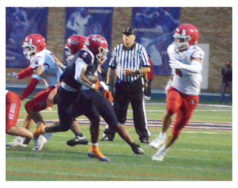 West Aurora High School’s Bryce Younie (6) tackles a Hinsdale Central ball carrier Friday, Aug. 29. Visiting Hinsdale Central won, 56-7.Al Benson/The VoiceWest Aurora High School’s Bryce Riley (8) runs the ball against Hinsdale Central Friday in Aurora. Hinsdale Central won, 56-7. West Aurora’s next game will be at home against Glenbard East at 7 p.m.. Al Benson/The Voice