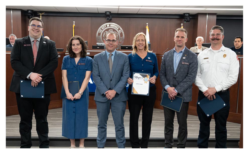 At the Aurora Committee of the Whole meeting, April 21, mayor John Laesch honored the Aurora Regional Fire Museum for winning two prestigious statewide awards from the Illinois Association of Museums. The museum received the 2026 Small Institution of the Year Award and the 2026 Award of Super Achievement (Exhibits), recognizing its overall impact in the region as well as inspiring curiosity in its youngest visitors.