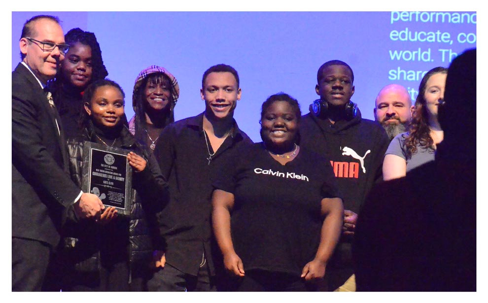 Aurora mayor John Laesch presented awards to local youth and adults. Donna J. Williams MLK Service Awards went to residents who exemplify a radical service ethic. Recipients were Talaat McNeely, leader, Purpose City Church, Faith in Action award; India Willliams, researcher, Human Rights Award; Avalon Betts-Gaston, Structural Justice Award; and Vincent Gaddis, Ph.D., Community Well-Being Award.