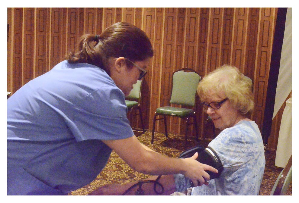Jewel Osco pharmacy tech Breanna Cuerraro performs a blood pressure check at Active Senior Expo at Courtyard Banquets in Warrenville Wednesday. Al Benson/The Voice