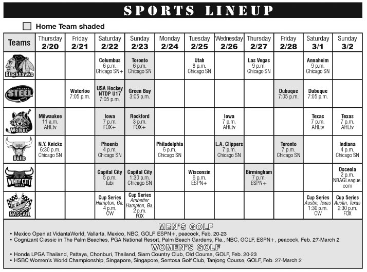 Sports Lineup February 20 through March 2