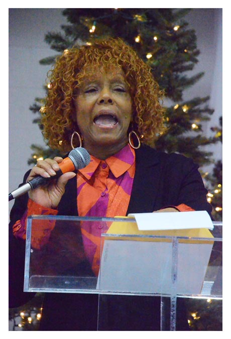 Peggy Hicks, past president, Fox Valley Christian Ministerial Alliance, speaks on “Who is my Neighbor?” at the FVCMA’s 12th annual M.L. King, Jr., community prayer breakfast January 19. Al Benson/The Voice