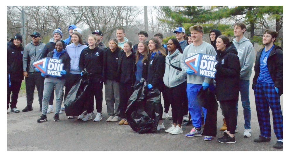 Edgelawn Drive from Jericho Road to Prairie Street in Aurora got a makeover April 10. Celebrating NCAA Division 3 Week, about 25 Aurora University male and female Spartan athletes cleared the Edgelawn roadway of debris. The annual service project was coordinated by Morgan Stenson, assistant athletic director and Christina Bonaparte,