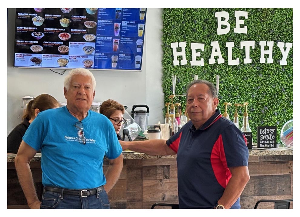 By Russ George Members of the Diabetes Club of Fox Valley held their October membership meeting Wednesday, Oct. 8, at Oak Street Restaurant, 945 Oak Street, in North Aurora. Club member, Donna Bohr, introduced guest speakers, Hlawn Tlang and Blend Dalipi, undergraduate students from Aurora University, majoring in Health Science