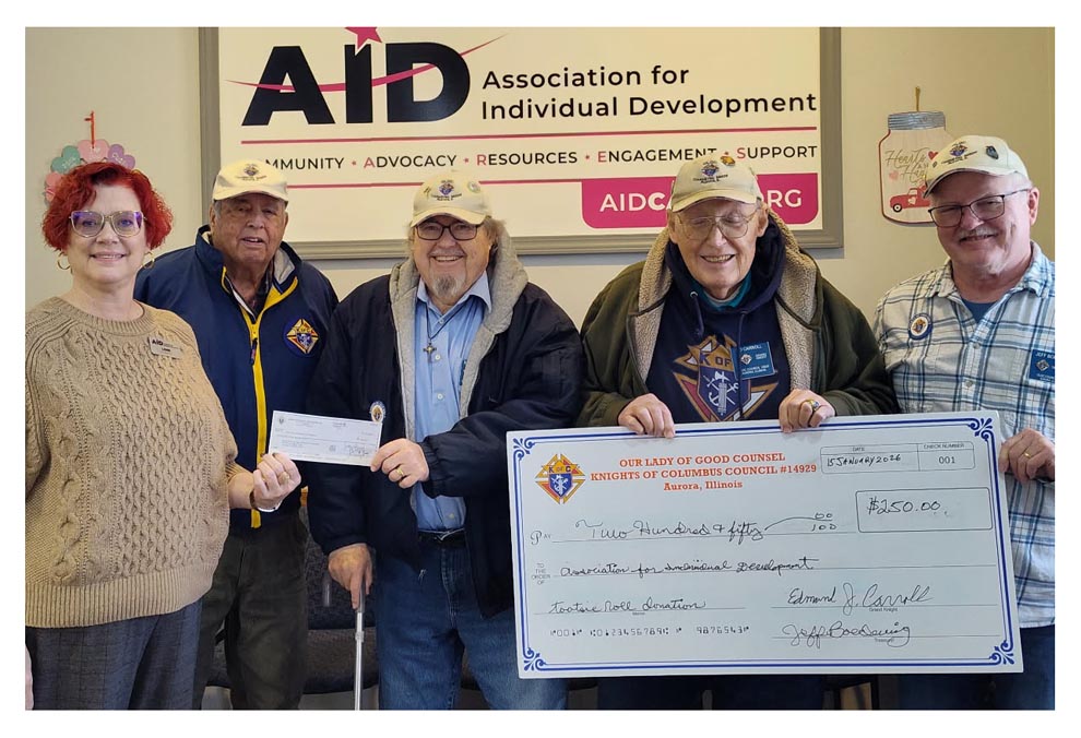 Our Lady of Good Counsel Knights of Columbus Council 14929 last month presented a $541 grant to Association for Individual Development (AID).