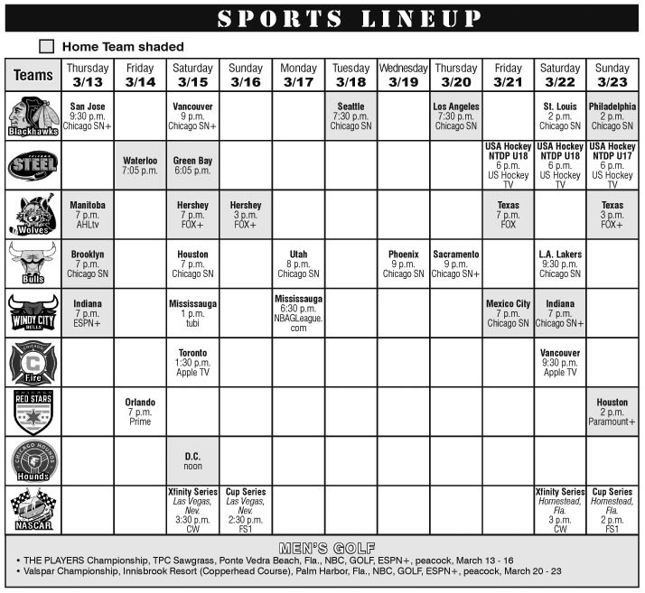 SportsScheduleSportsSports LineupLeave a comment Sports Lineup March 20 through March 30 On March 18, 2025March 18, 2025 By admin