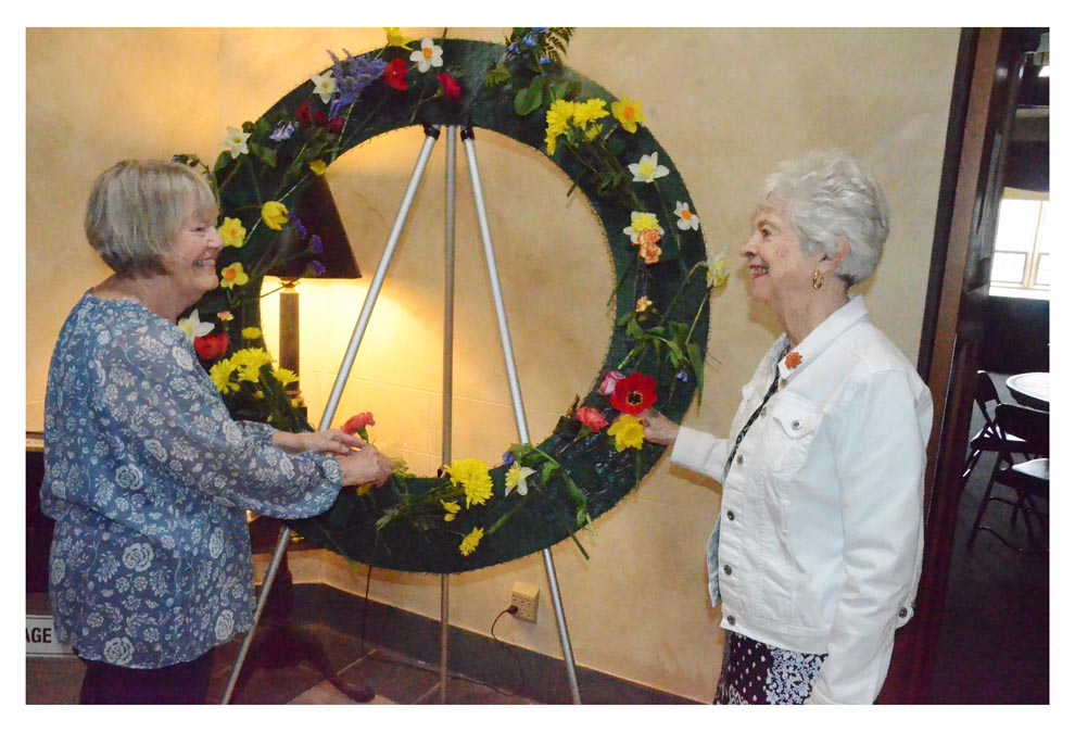 A living flower wreath returned to Wesley United Methodist Church in Aurora recently. Continuing a Wesley Easter tradition, the wreath in the church narthex (lobby) was decorated by members before worship. Lynn Burnett and Kathy Breazeale coordinated the display. Reverend Tammy Scott, Wesley lead pastor, said “The wreath helps turn