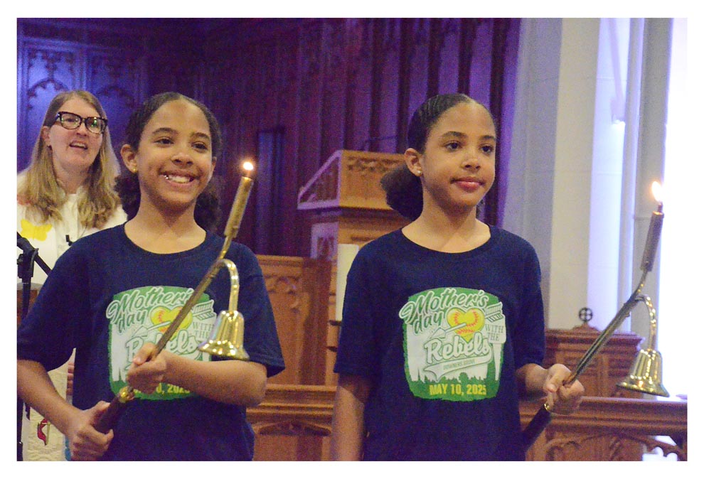 Haylee and Hannah Scott of Oswego serve as acolytes during worship at Wesley United Methodist Church in Aurora on Mother’s Day, Sunday, May 11.